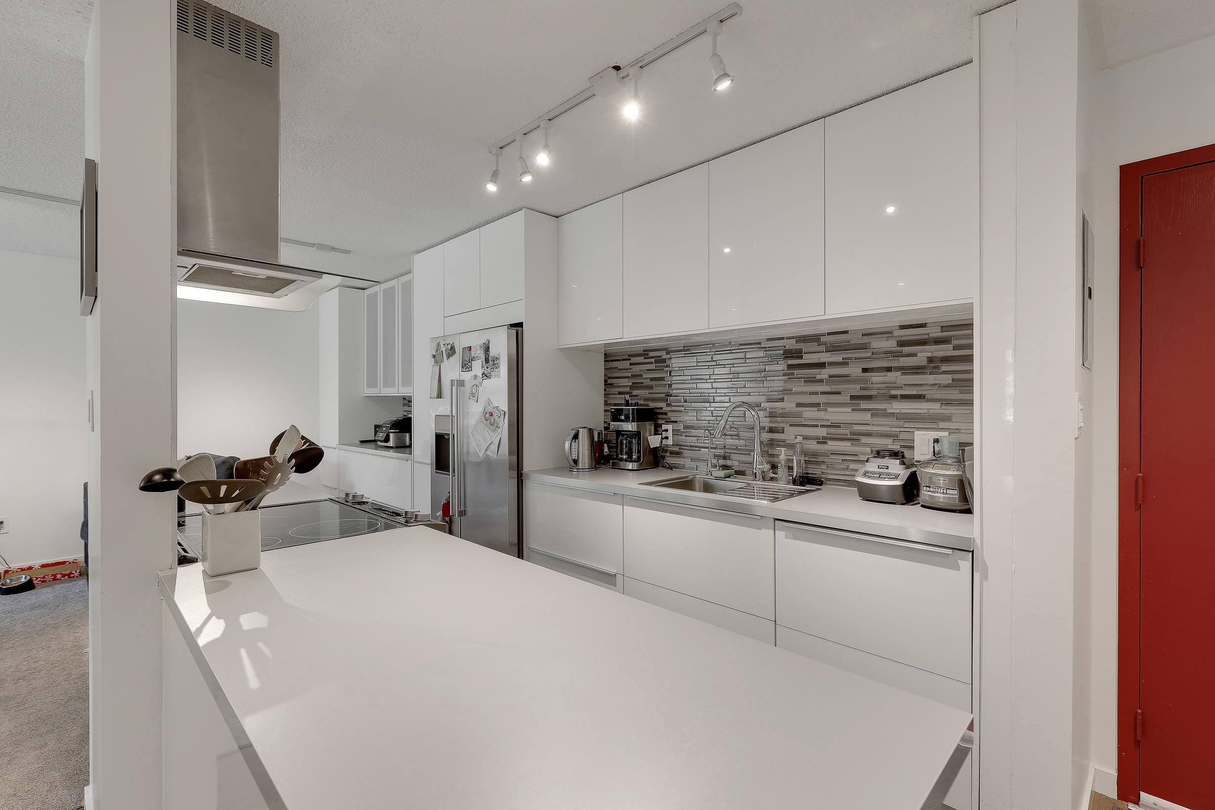 Welcome to this BRIGHT and beautifully updated TOP-FLOOR, SOUTH-facing unit in Chinook House, offering 2 BED + 1.5 BATHS. This cozy penthouse features a spacious, functional layout with generous principal rooms and excellent in-unit storage. Step outside onto your private patio & enjoy a morning coffee. The home includes 1 parking / 1 locker & convenient shared laundry on the same floor. With a proactive strata that has completed several key building updates in recent years, you can move in with peace of mind. Rentals allowed and pets are welcome CATS ONLY, no dogs. Located just one block from Waterfront Park & steps from the Seabus, Shipyards District, Lonsdale Quay, shops, + restaurants, this unbeatable location offers the BEST OF NORTH VANCOUVER LIVING.